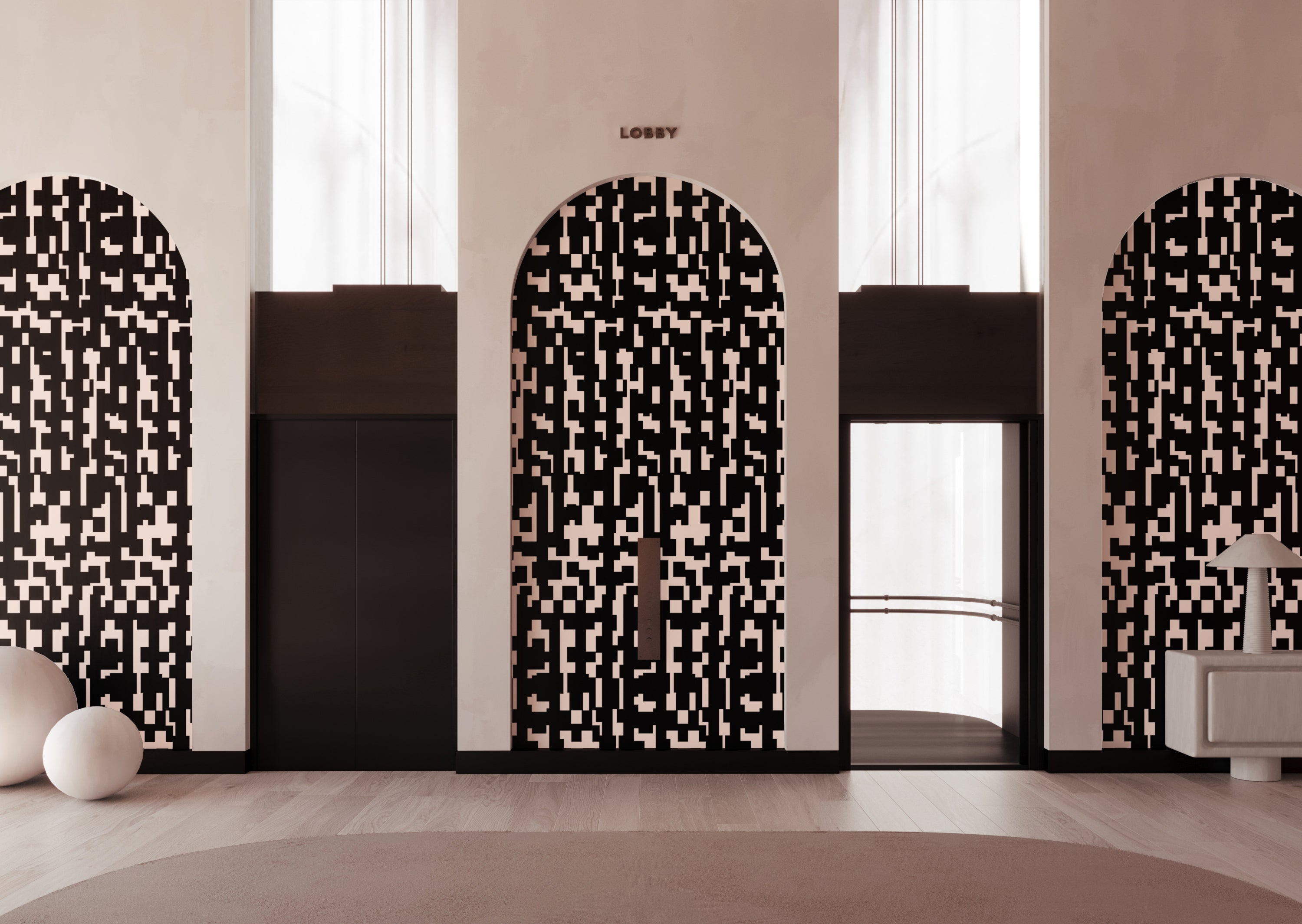 Mainframe© Wallpaper in Flamingo + Black